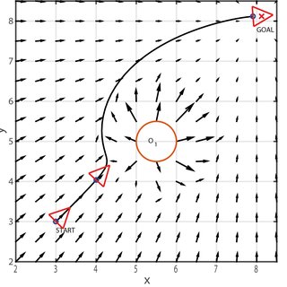 It's obvious that you need some sort of geometrical information about the surrounding world if you want to avoid obstacles. This algorithm uses Intel RealSense D435 depth camera - it provides a 3D point cloud which can be easily used for potential fields computation.