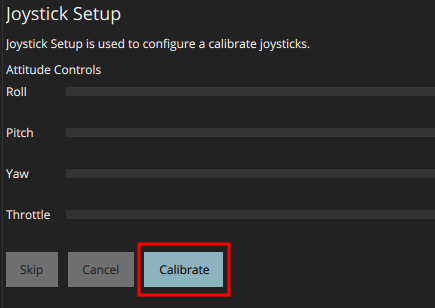 Для калибровки джойстика, во вкладке Joystick нажмите кнопку Calibrate и следуйте инструкциям положения стиков пульта, указанных с левой стороны окна.