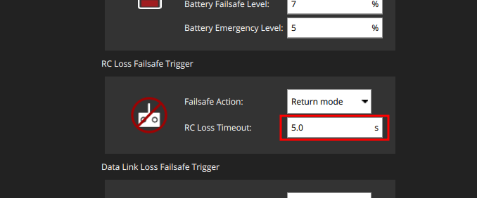 Поскольку мобильная связь не всегда бывает стабильна, рекомендуется увеличить таймаут на потерю сигнала управления до 5 секунд.