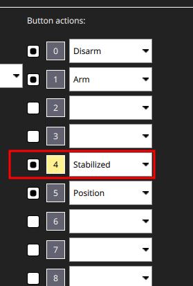 Hint Если коптер не армится при переведении левого стика в нижний правый угол, установите состояние Arm/Disarm на один из тумблеров.