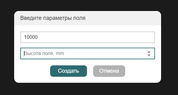 Перед началом работы надо задать размеры поля. Оно нужно только для удобства. Для перемещения по "полотну" используйте тачпад или колёсико мыши для перемещения по карте. При использовании мыши зажмите Shift для перемещения в горизонтальном направлении и Ctrl для увеличения/уменьшения поля.
