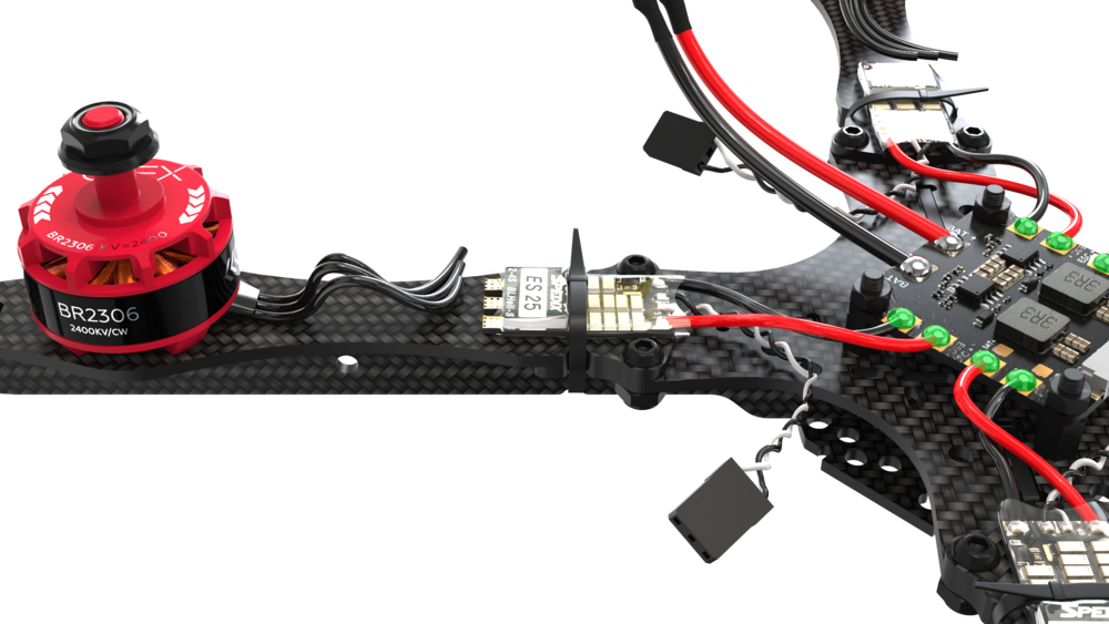 Установите регуляторы оборотов (ESC) в соответствующие места на луче.