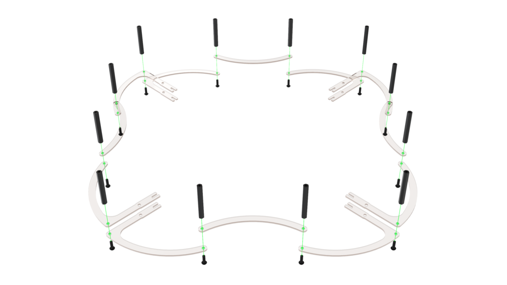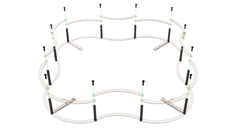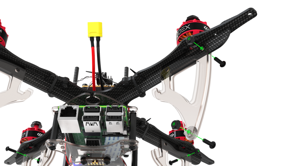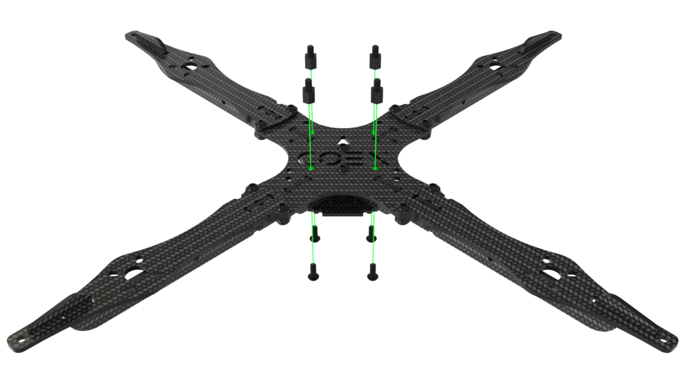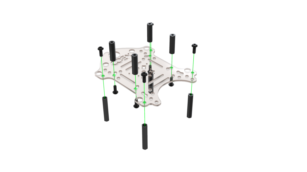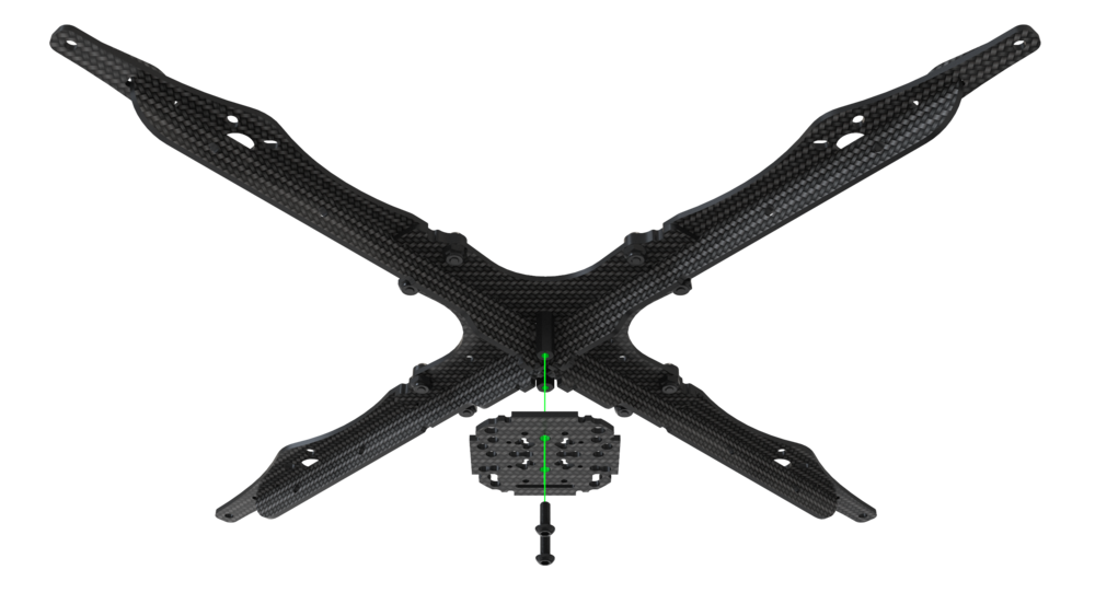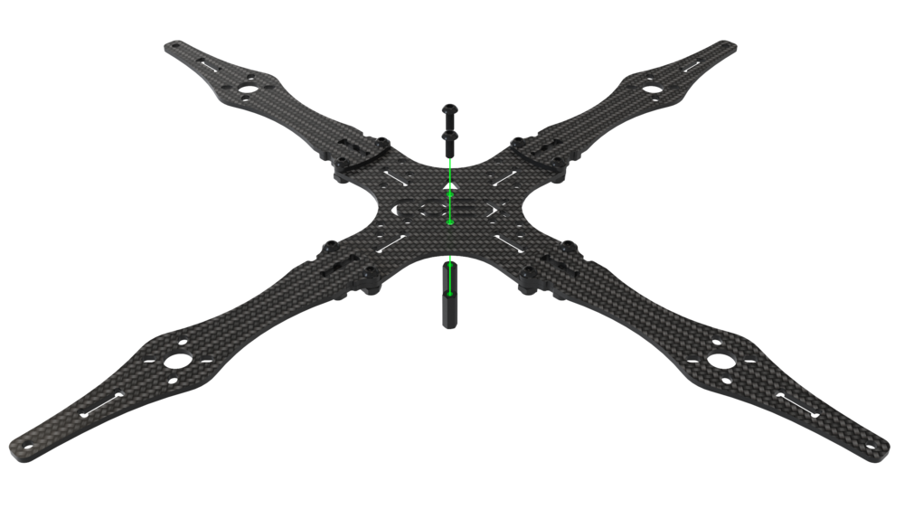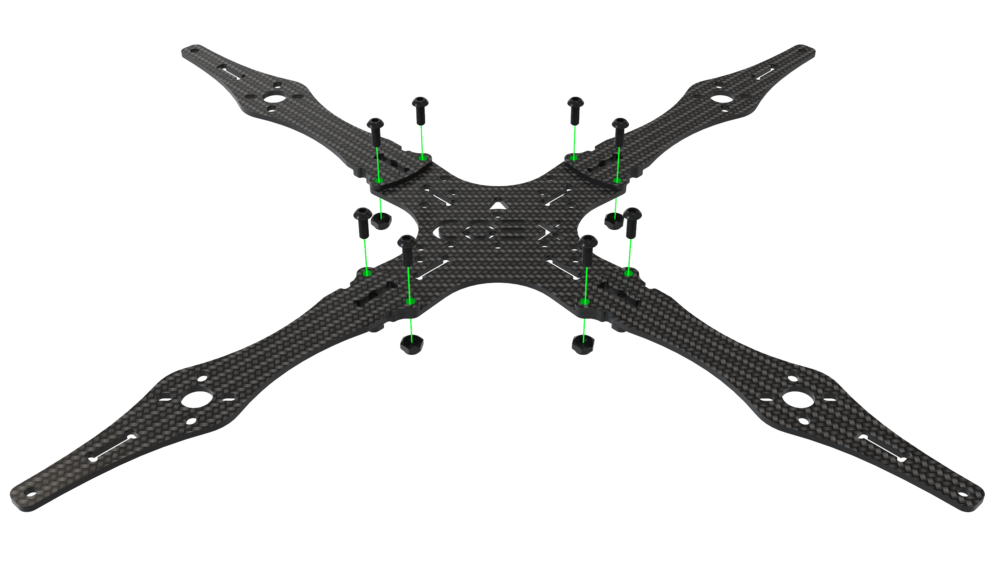 Совместите 4 луча с центральной декой, зафиксируйте их при помощи винтов М3х8 и самоконтрящихся гаек.