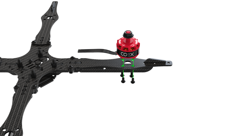 Установите мотор на соответствующие отверстия в луче с помощью винтов М3х5.