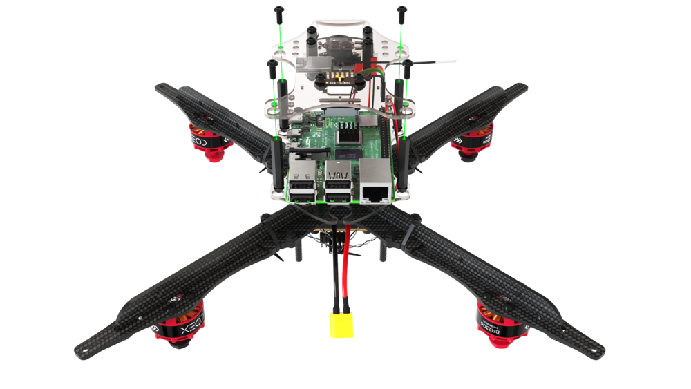 Установите полетный контроллер и закрепите нейлоновыми гайками.