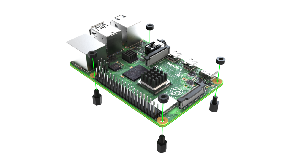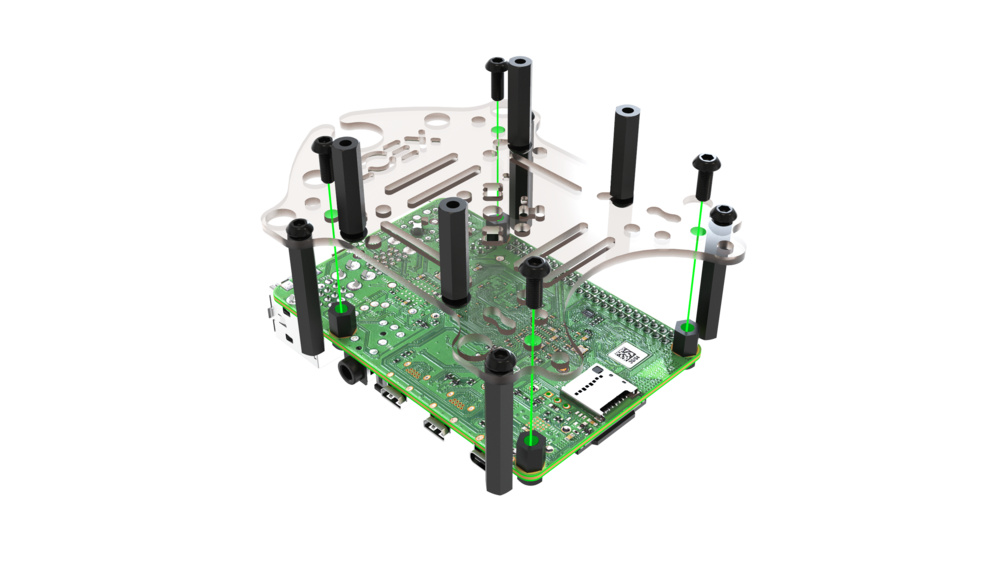 Установите Raspberry Pi на монтажную деку, закрепив ее болтами М3х6.