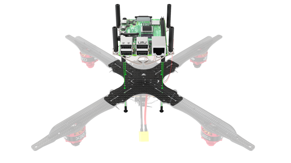 Собранный модуль установите над модулем Raspberry Pi и зафиксируйте болтами М3х8.