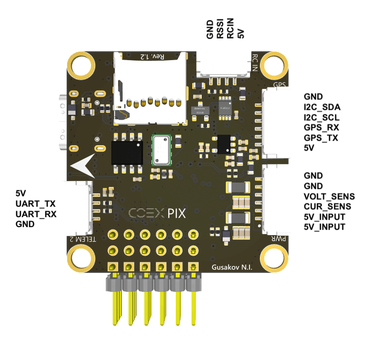 Hint Исходные файлы полетного контроллера COEX Pix выложены в открытый доступ под лицензией CC BY-NC-SA.