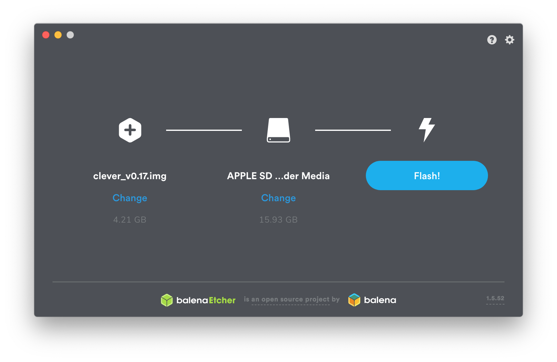 - Запишите скачанный образ на карту, используя Etcher.