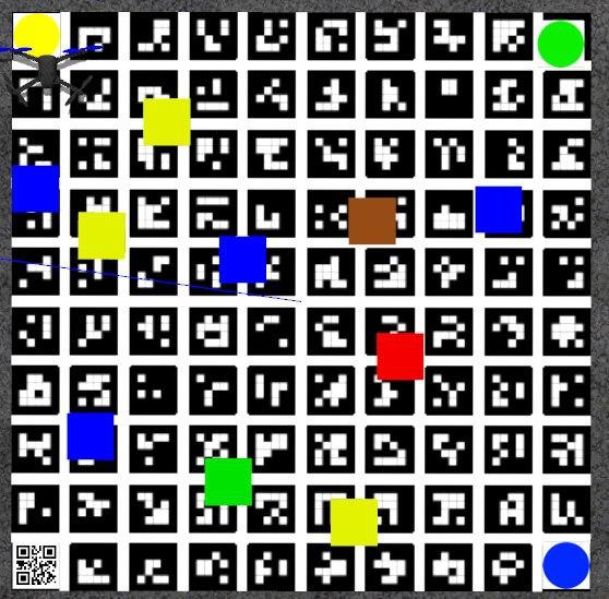 - Взлет (с QR-кода) и посадка (на цветной маркер небольшого размера).