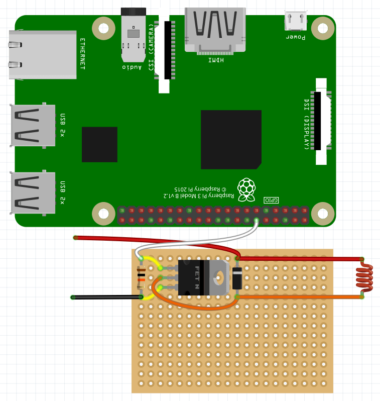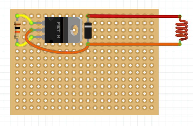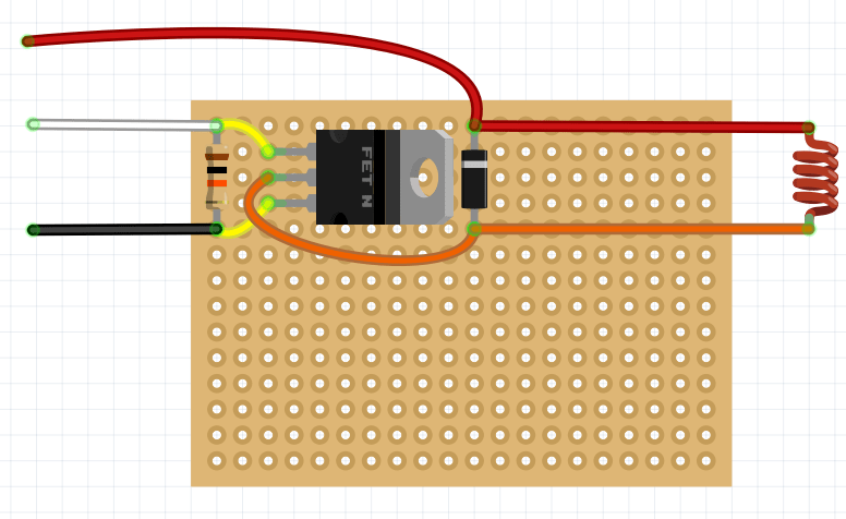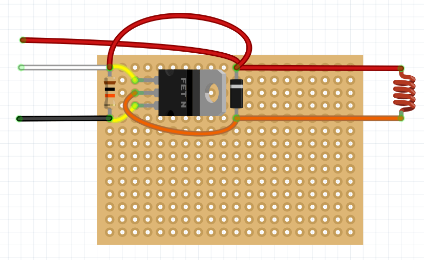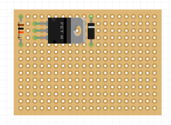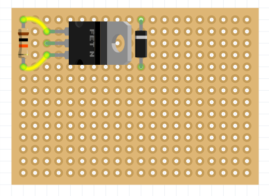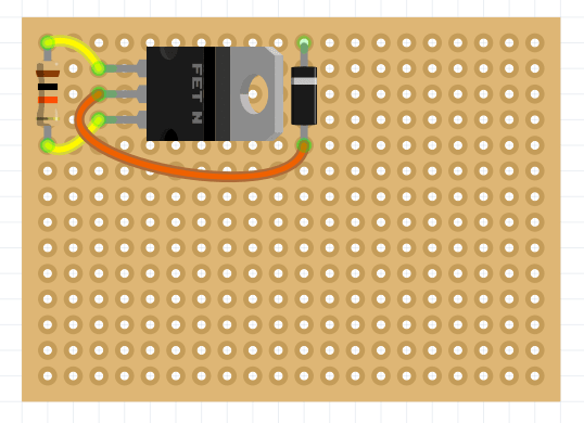 На паечной плате разместите диод Шоттки, резистор на 10 кОм и транзистор.