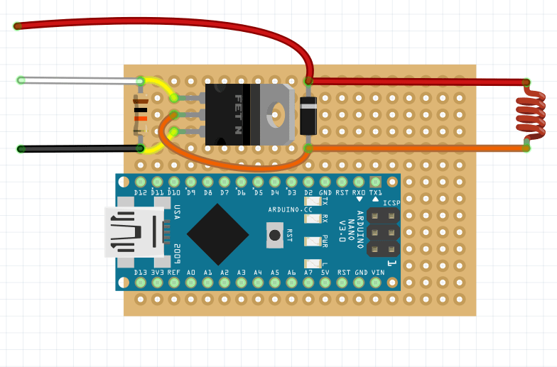 Ниже представлен пример сборки схемы электромагнитного захвата на макетной плате.
