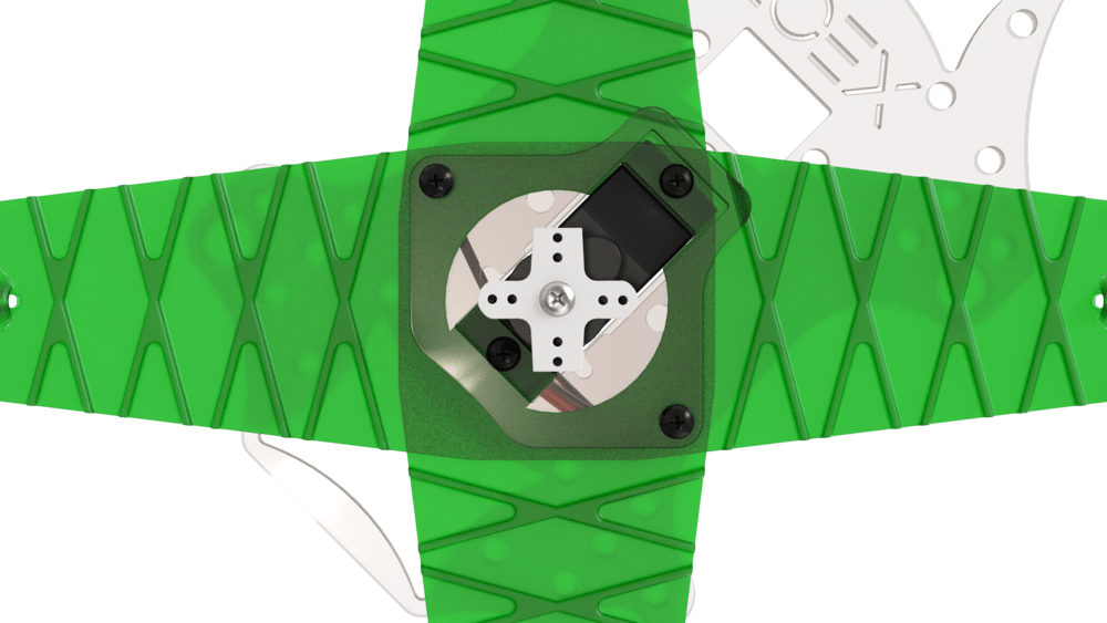 Установите на шестерню крестообразное крепление и закрепите его помощью винта, прилагающегося к сервоприводу.