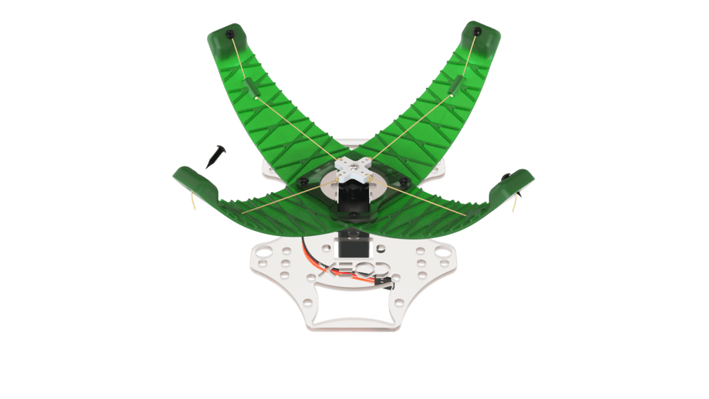 Установите сервопривод в соответствующий паз в центре пластин, таким образом, чтобы осевая шестерня находилась посередине захвата.