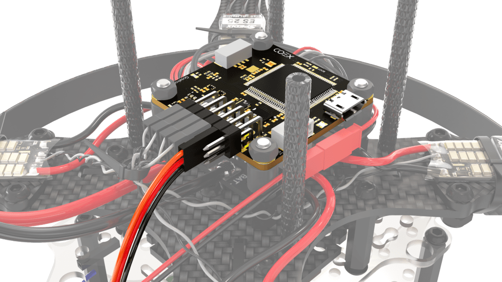 Протяните кабель сервопривода и вставьте его в выход AUX 1-2 на полетном контроллере.
