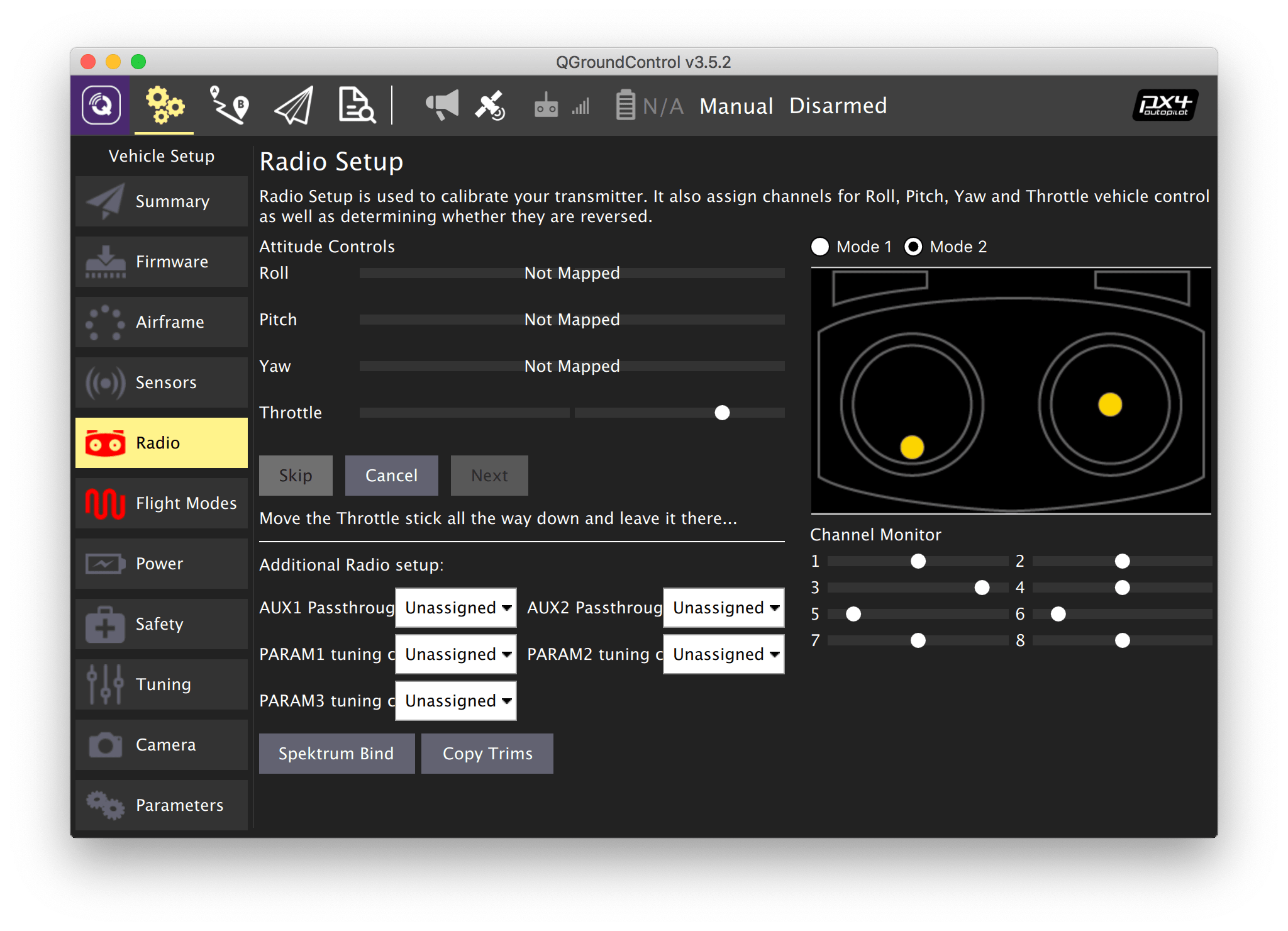 Дополнительная информация: https://docs.qgroundcontrol.com/en/SetupView/Radio.html.