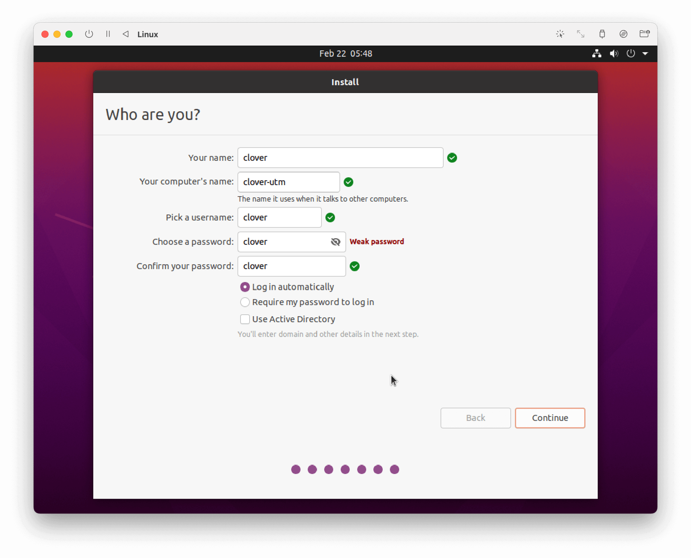 Создайте новую виртуальную машину в UTM, выбирая следующие настройки: