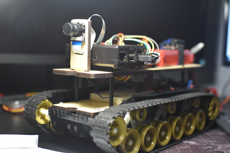 Рис. 1. Гусеничный робот с COEX Pix и Raspberry Pi 3 B+.